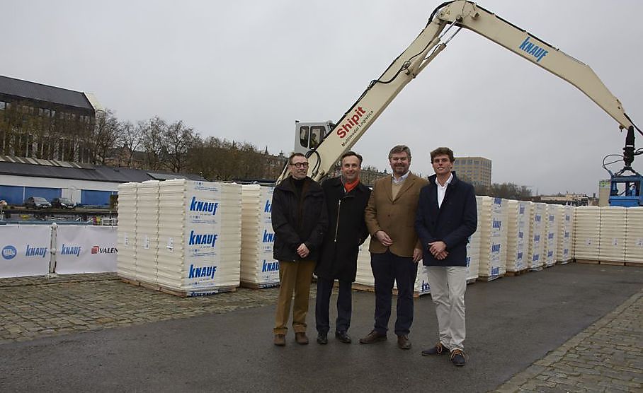 Knauf onderzoekt via een pilootproject de rendabiliteit van transport via waterwegen. 1 schip vervangt namelijk maar liefst 4 kilometer vrachtwagens en naast de CO2-reductie worden ook de sociale en maatschappelijke kosten door het gebruik van de binnenvaart beperkt. Op de Belgische waterwegen staat palletvervoer via de binnenvaart nog in zijn kinderschoenen. Als pionier in duurzaam transport startte afwerkingsspecialist Knauf in Kortrijk (BE), een pilootproject om de rendabiliteit van palletvervoer over water te onderzoeken. Op 27 november 2017 vertrok in Wielsbeke de Oorderdam van partner Shipit met gipsblokken aan boord richting de Akenkaai in Brussel. Het schip is uitgerust met een kraan, dus de schipper zet de paletten zelf aan wal, waardoor er geen vrachtwagen aan het vervoer te pas komt. Antoon Desmet, Head Internal Sales & Logistics bij Knauf-Isolava: “In België liggen onze belangrijkste productiesites strategisch langs waterwegen. Dat is handig, maar natuurlijk zijn er ook investeringen nodig, aan de laad- en loskades. Door die investeringen te doen en zo veel mogelijk gebruik te maken van de binnenvaart, wil Knauf meewerken aan een ecologische toekomst. We onderzoeken momenteel samen met experten van de VUB de aspecten van een rendabele binnenvaart – want tal van factoren spelen een rol in de logistieke puzzel. Het voorbije jaar hield Knauf alvast 14.000 vrachtwagens van de baan. Wij geloven dan ook 100% in de toekomst van palletvervoer via de waterweg.”