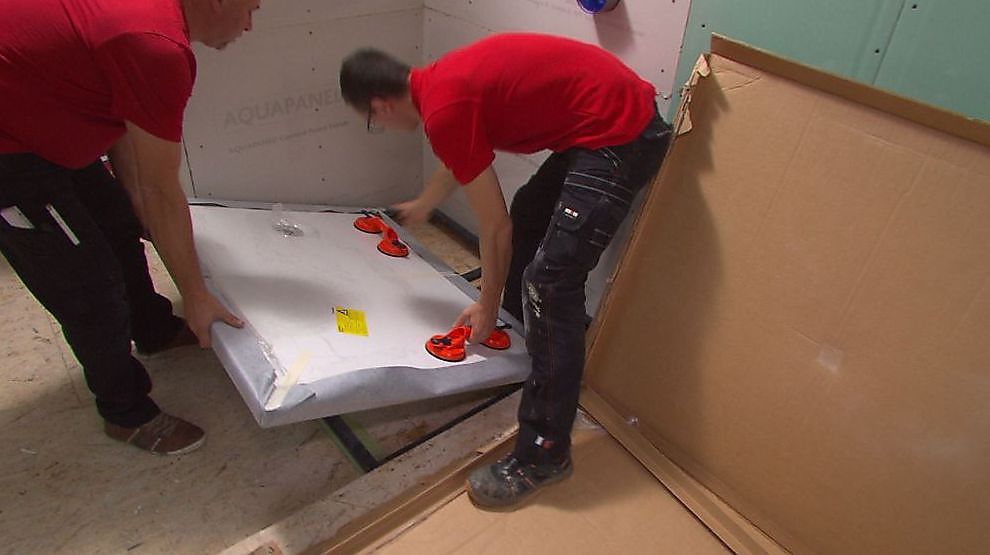 We bouwen stap voor stap een badkamer op. De wanden zijn al geplaatst, nu is het de beurt aan de douche. We kijken hoe je zo’n douchebak plaatst en de douche-omgeving waterdicht maakt.